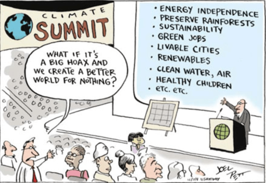 Better to not to get bogged down in the whole debate. To save time, let’s act as if climate change isn’t real. Then when Al Gore finally jumps out from behind the scenes and goes, “AHAHAHAH! You should’ve seen your face!”, we’ll be able to hold our heads high.