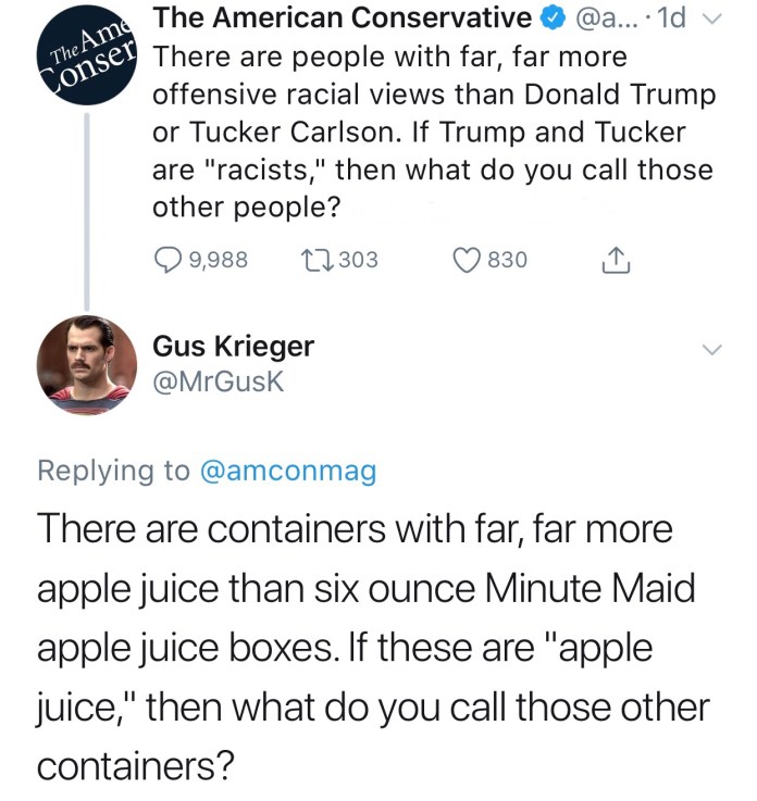 Here’s an exchange I saw on Twitter, to take the edge off.